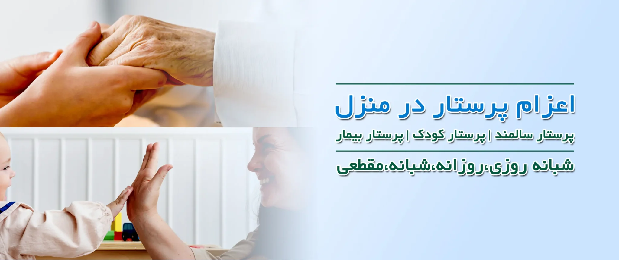 شرکت ما در این حوزه شامل موسسه پرستاری از سالمند در منزل، موسسه پرستار کودک در کرج و پرستار بیمار و همچنین همراه بیمار در بیمارستان و منزل می باشد.